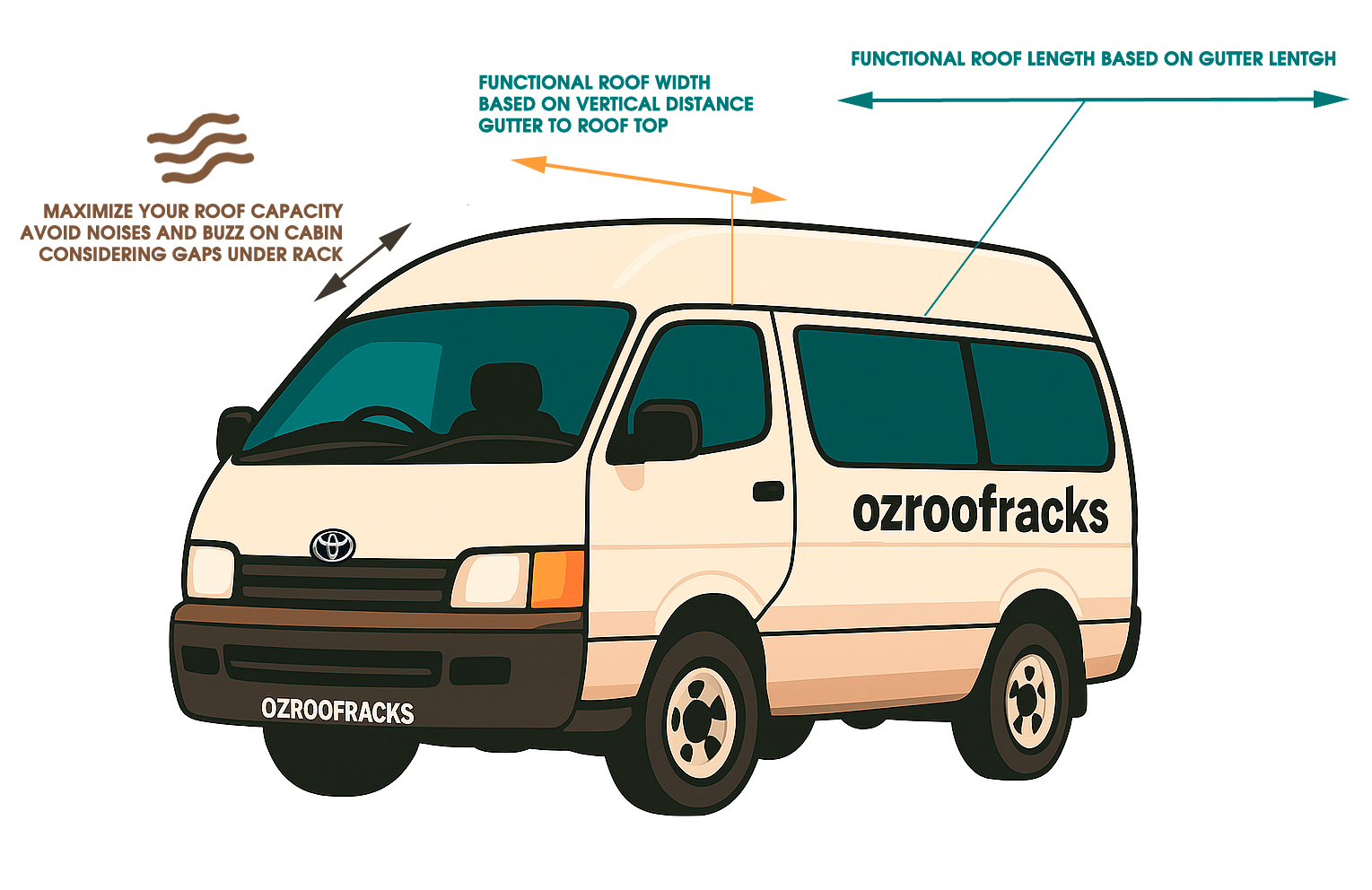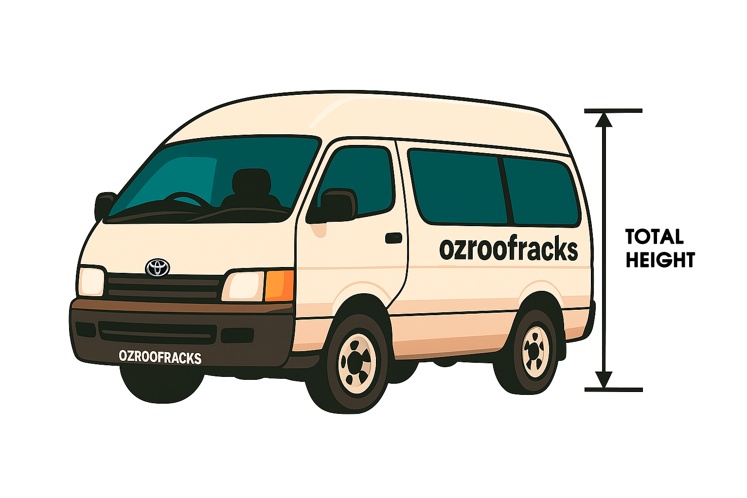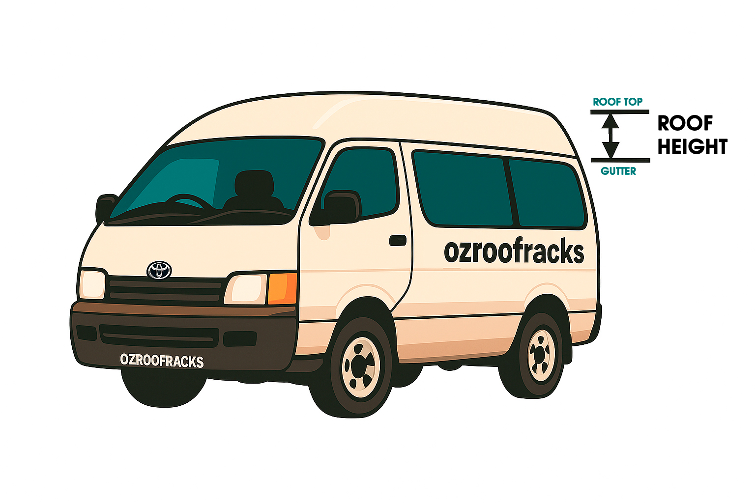 Many van manufacturers (Toyota Hiace, Transit, Sprinter, etc.) list “height to gutter” and “height to roof” in the factory spec sheets — but aftermarket elements like tyres or suspension lifts change that so measuring manually is a must to get the true clearance.